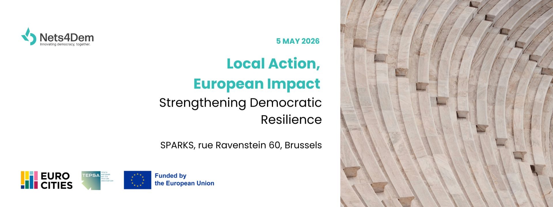 The conference will contribute to that debate from a practical and multi-actor perspective. We will explore what democratic resilience requires at the local, national and European levels, and how these levels can complement one another. It will examine the role of civil society and research, and the role of democratic infrastructures such as Nets4Dem in connecting actors, knowledge, and practice. Through examples from cities and local actors, the programme will show how democratic resilience is being built and practised on the ground. We will also identify the conditions needed to make this work stronger, more connected and more sustainable across Europe.